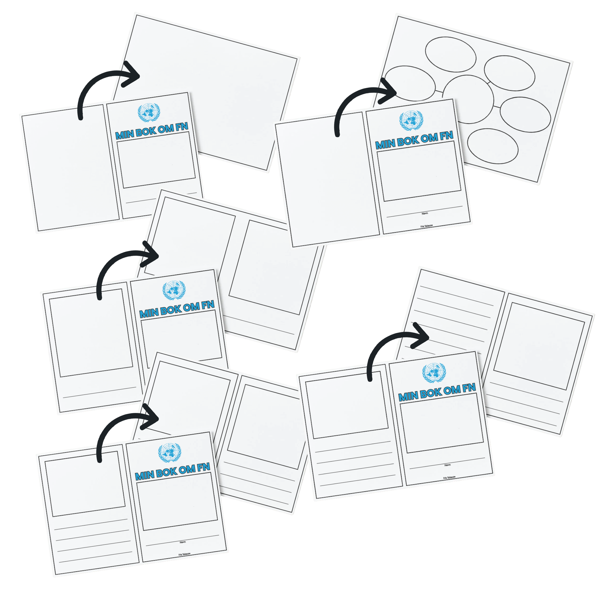La elevene lage minibøker om FN! Her får du fem ulike minibøker med varierte maler, i tillegg til ekstra tosidige ark man kan stifte inn for flere sider om ønskelig! Dette er tilpasset opplæring hvor alle mestrer!