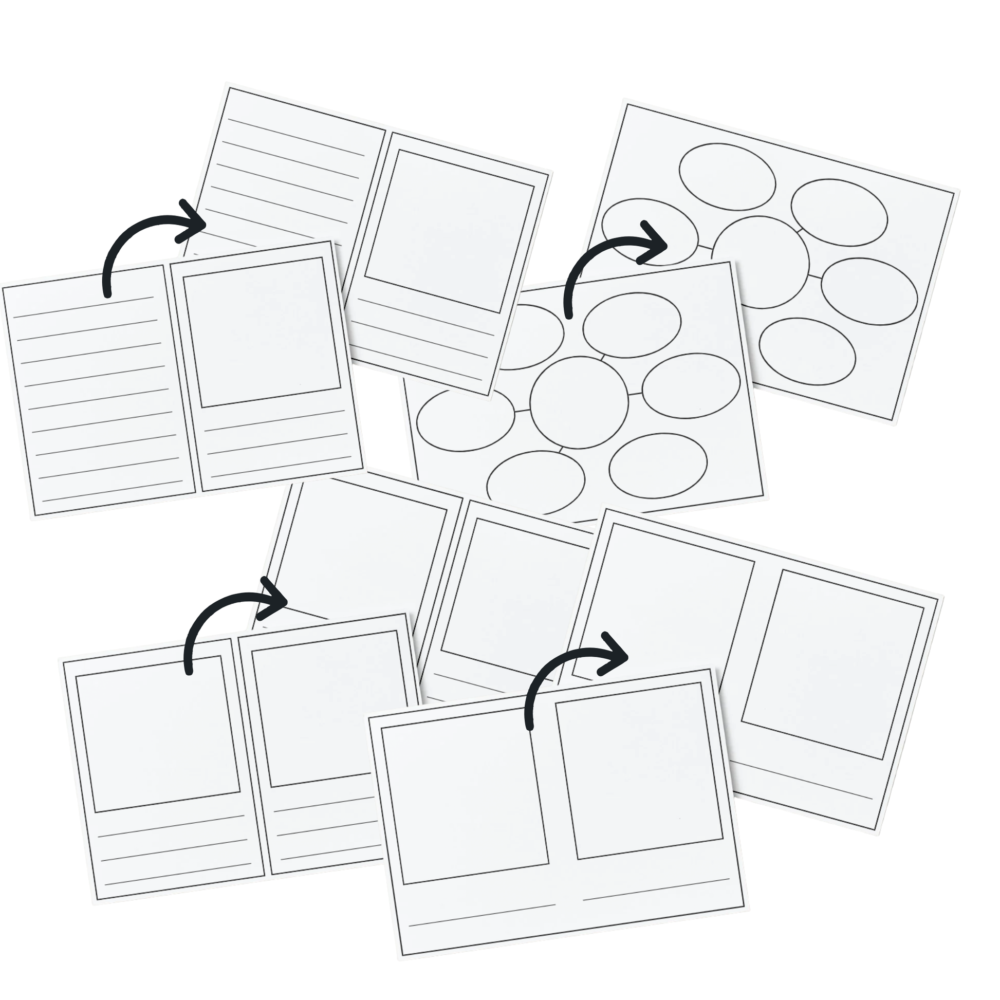 - 20-siders PDF-fil med ferdige utskriftsvennlige maler (5 varianter med minibøker)